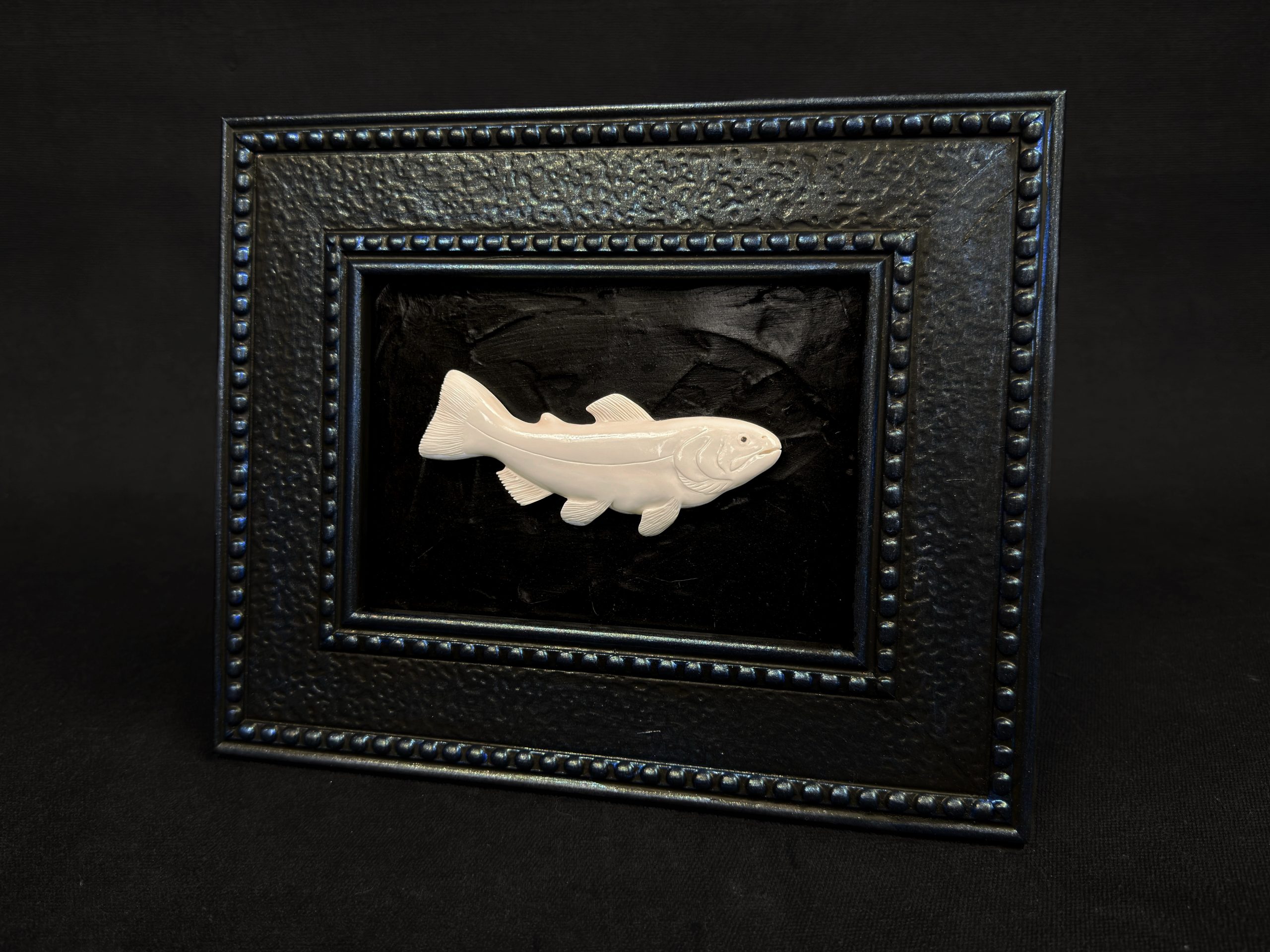 I use antler, which is naturally shed and regrown by the animal each year. Once carved, each piece is sanded and buffed to highly polished finish. Each sculpture is signed and has a sawtooth hook on the back, ready for easy hanging